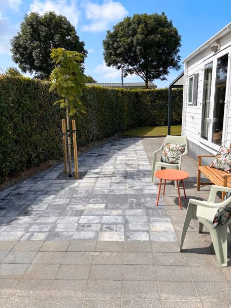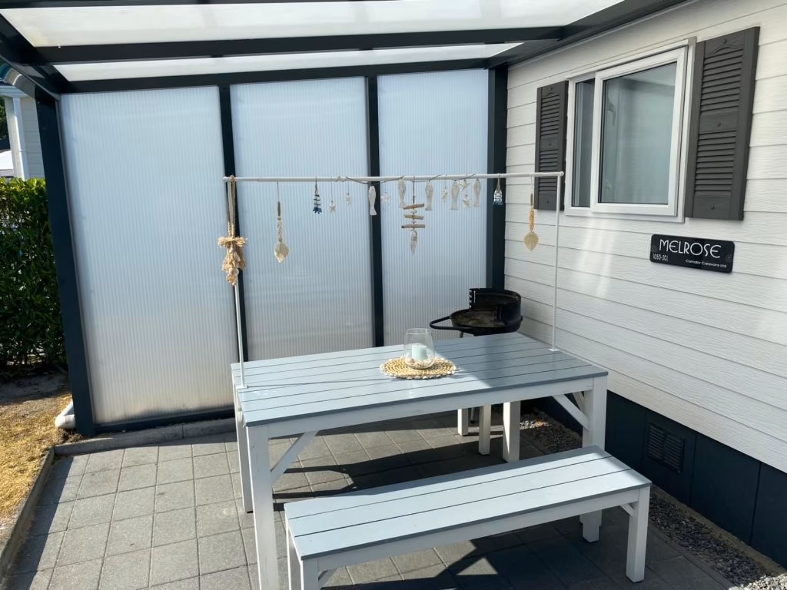 Der überdachte Außenbereich lädt dazu ein, den Tag entspannt ausklingen zu lassen und die frische Luft zu genießen.